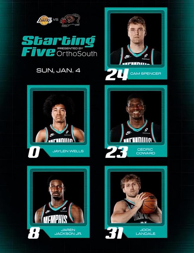 首发阵容方面,灰熊队这边,扎克-伊迪、小皮蓬、威廉姆斯、杰罗姆等多人缺阵,莫兰特(右小腿酸痛)也不打了, 教练排出的最新首发五人组为:杰伦-韦尔斯、贾伦-杰克逊、兰代尔、塞德里克-考沃德、斯潘塞;湖人队这边,八村垒(右侧腹股沟酸痛)、里夫斯(左小腿拉伤)和文森特(下背部酸痛)缺阵,首发阵容则为:勒布朗-詹姆斯、杰克-拉拉维亚、德安德烈-艾顿、马库斯-斯马特、卢卡-东契奇。