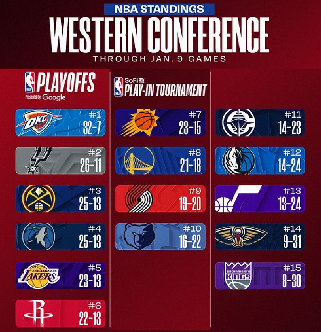 本赛季至今,雄鹿以17胜21负排名东部第11,落后东部第十的公牛0.5个胜场;湖人则以23胜13负位列西部第五,仅领先西部第七的太阳1个胜场。