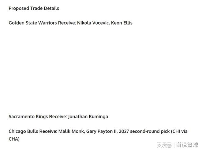所以媒体FW支招勇士,可以考虑做三方交易,涉及的另外两支球队,分别是芝加哥公牛和萨克拉门托国王。勇士可以引进中锋武切维奇,并且抄底26岁铁闸基恩-埃利斯,他如今在国王愈发挣扎。