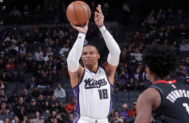 原本国王也是西部大黑马之一,前几年常规赛胜率稳步提升,印象最深刻的是23年,福克斯与小萨携手,他们差点在季后赛首轮上演黑八,与当时的卫冕冠军勇士鏖战到了抢七。其实继续维持福克斯+小萨博尼斯的核心阵容,国王还是很有前景的,然而他们偏偏要一番运作,送走福克斯,得到了德罗赞+拉文,还在去年夏天疯狂补强,引进了威少,施罗德等后卫。光看纸面实力,国王队拉满了。阵容拉文,德罗赞,小萨,威少四人都进过全明星,替补席还坐镇蒙克这样的超级第六人,尖兵得分手,还有施罗德这样的世界杯+欧锦赛双冠王。