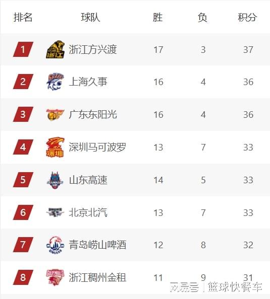 CBA积分榜最新排名出炉!辽篮狂胜重返前12:广厦第1广东第3-JRS直播网