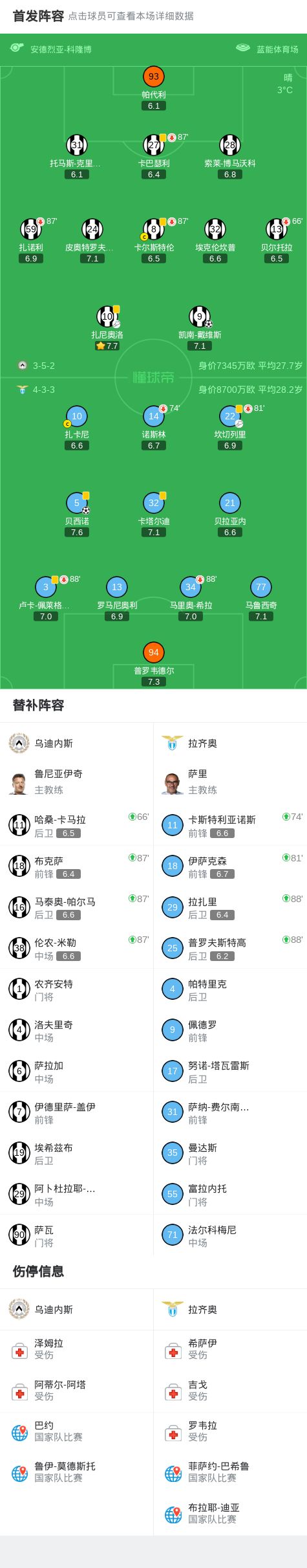 2025年12月28日 意甲-贝西诺破门戴维斯补时绝平 拉齐奥1-1乌迪内斯