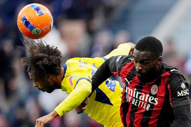 比赛第9分钟,维罗纳制造威胁,贝内德带球强行突破,到了底线附近,他送出倒三角回传球,结果被对手破坏了。第17分钟,奇克在中路带球推进,被铲倒在地。但裁判没有给牌。随后,奇克在禁区外停球后尝试一脚远射,被挡出了底线。第27分钟,恩昆库门前错失良机,没能包抄到位。第46分钟,AC米兰进球了!依靠角球机会,普利希奇在门前推射破门。半场结束,AC米兰1-0领先维罗纳。