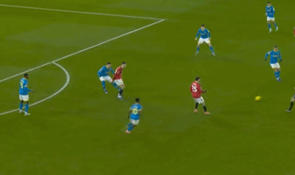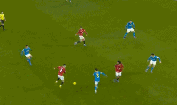 其余的5个位置,由替补、年轻人和伤愈复出的球员来填补,这让后卫线的抗打击能力、转换质量和门前效率都一一下降,所以你只能看到库尼亚似乎在苦苦支撑球队,用他的个人能力来试着带动曼联。