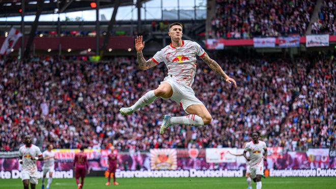 谢什科在上赛季的进球数据来源,暂且不谈德甲联赛的强度高低,仅仅从战术体系层面,就会发现谢什科虽然身处莱比锡红牛的三后卫,但在前场其实身处双前锋体系,突前职责是和奥蓬达共同承担的。