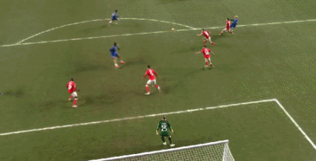 第45+5分钟,哈托禁区左路凌空爆射破门,切尔西1-0查尔顿