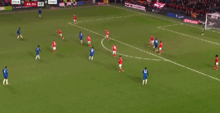 第90+1分钟,内托禁区左路内切抽射破门,切尔西4-1查尔顿