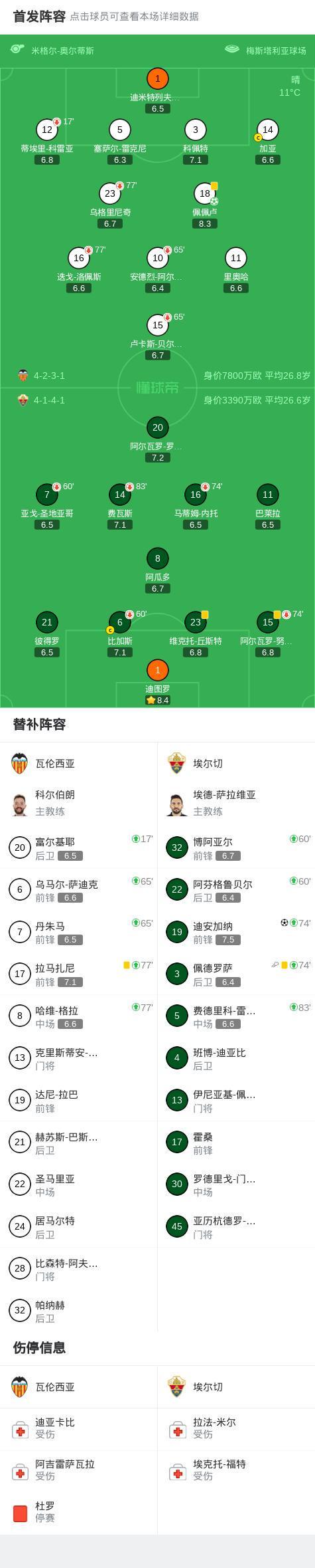 瓦伦西亚1-1埃尔切,迪安加纳破僵,佩佩卢救主