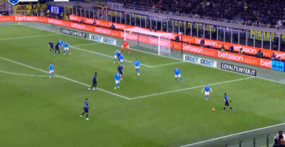第42分钟,迪马尔科左路传中,泽林斯基抽射打在队友劳塔罗身上