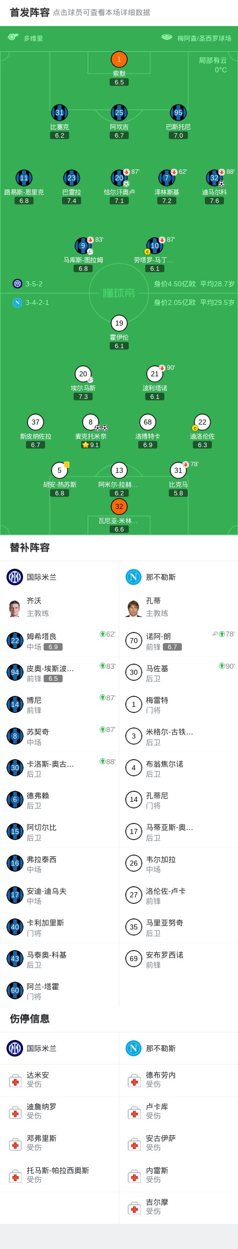 第9分钟,图拉姆助攻,迪马尔科小角度抽射远角破门,国米1-0那不勒斯