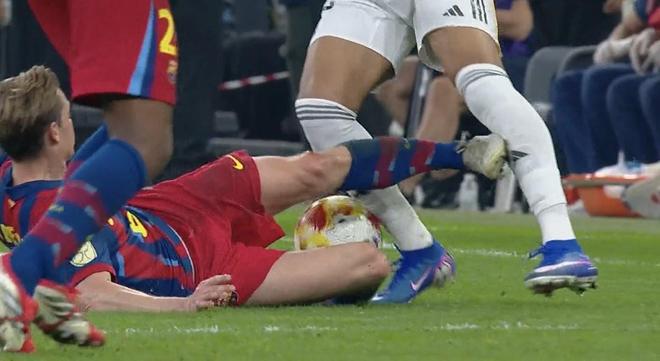 北京时间1月12日,在西班牙超级杯的决赛中,巴塞罗那最终依靠拉菲尼亚的梅开二度以及莱万多夫斯基的进球3-2击败皇家马德里,成功卫冕该项赛事的冠军。比赛最后时刻,弗朗基-德容曾因为蹬踏姆巴佩被出示红牌罚下。