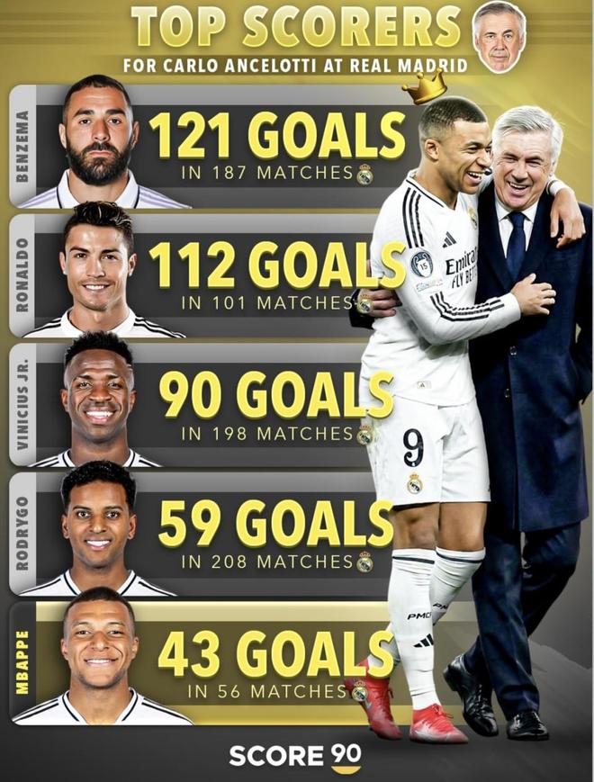 安切洛蒂那份是多年累积出来的结构,时间一长,球队会自然形成更丰富的分工:有人吃掉一整段时间的第一终结任务,有人随着位置变化和成熟度变成第二火力点,有人靠长期出勤把数量一点点堆上去。周期越长,进球分布越有层次,榜单就更容易变成“前排很多人都很高”。