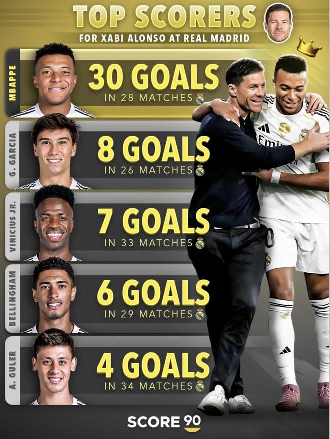 最近足球机构SCORE 90发布了两份皇马队内射手榜数据,放在一起对比,差别立刻显露。阿隆索这段数据里,进球更明显地集中在姆巴佩身上;安切洛蒂那份则是多人长期累积,把火力层次撑得更厚。一边是“都喂给姆巴佩”,一边是“多点一起进”,到底哪种更容易把冠军拿到手?(数据截至2026年1月15日)