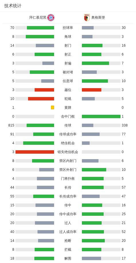第23分钟,奥利塞开出角球,伊藤洋辉头球破门,拜仁1-0奥格斯堡