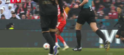 第29分钟,拜仁前场4打3,迪亚斯把球停大了,随后被达门化解