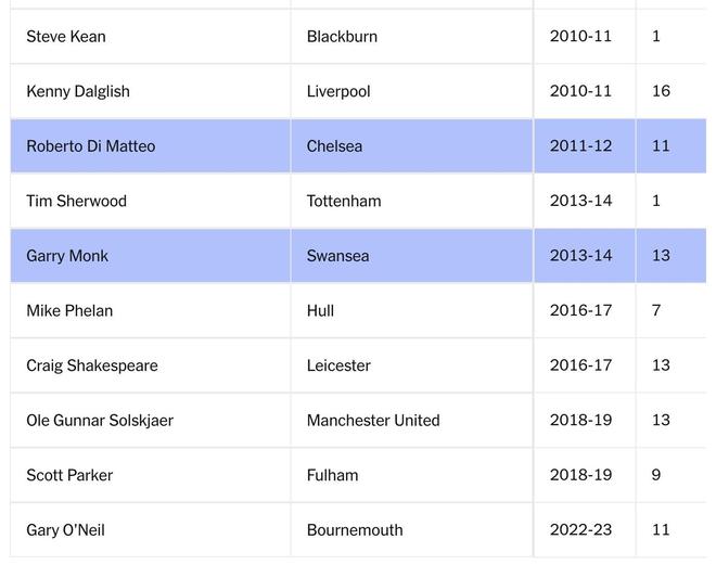 帕克或许可以算一个:他接手时球队降级几乎已成定局,但随后立刻率队完成升级。富勒姆的克里斯-科尔曼同样称得上成功,他在2003年至2007年间担任正式主帅,累计执教多达171场比赛。达格利什的实际战绩或许谈不上耀眼,但在霍奇森那段混乱而低迷的时期之后,利物浦上下几乎没人会后悔让他回归执教席。