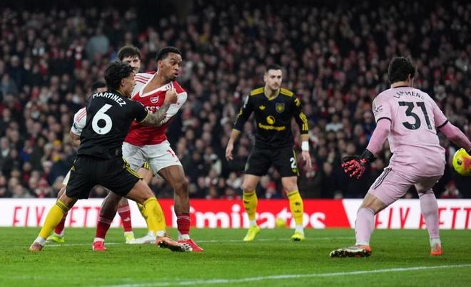 第29分钟,多古头球解围不远,萨卡右路横传,厄德高顺势推射,利桑德罗-马丁内斯解围踢空,球飞入球网。