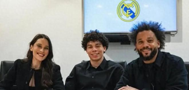 签约仪式现场,父亲马塞洛全程陪伴在侧。这位曾为皇马效力十余年的功勋老将,始终默默关注并支持着儿子的每一步成长。